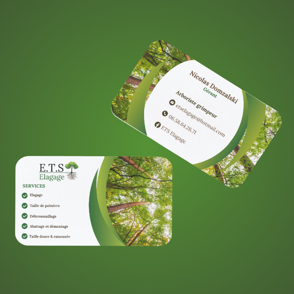 Pour ETS Élagage, j’ai conçu le logo et la carte de visite afin de poser les bases d’une identité visuelle claire et professionnelle, reflétant le savoir-faire et la fiabilité de l’entreprise.